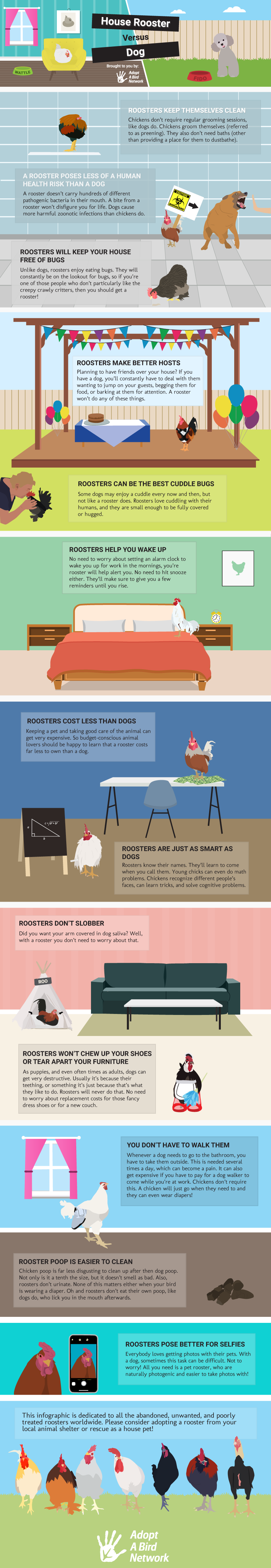 There are numerous reasons why chickens are much better house companions then dogs. Here is a fun infographic showcasing the reasons why you need a house chicken: